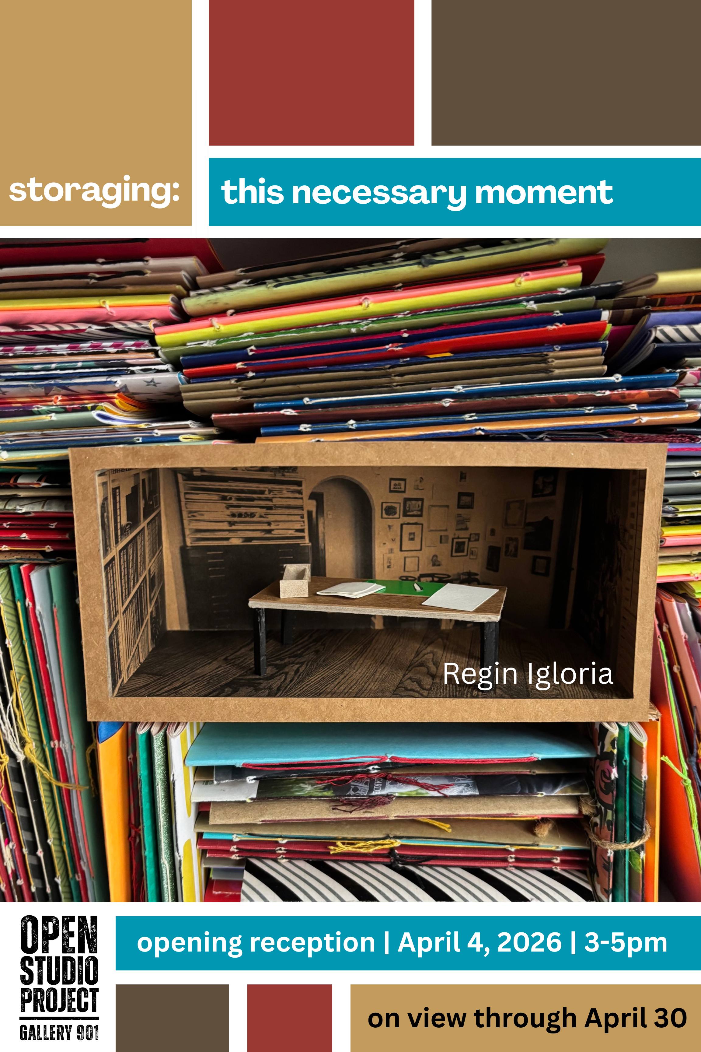 Regin Igloria combines his ongoing community bookbinding project, North Branch Projects (NBP), with the excavation process of his recently vacated storage unit. The exhibition consists of sculptural pieces resembling household furniture and hybrid objects that house hand-made books, collages, and book-related ephemera, revealing the fraught movement between past histories and a hopeful future.